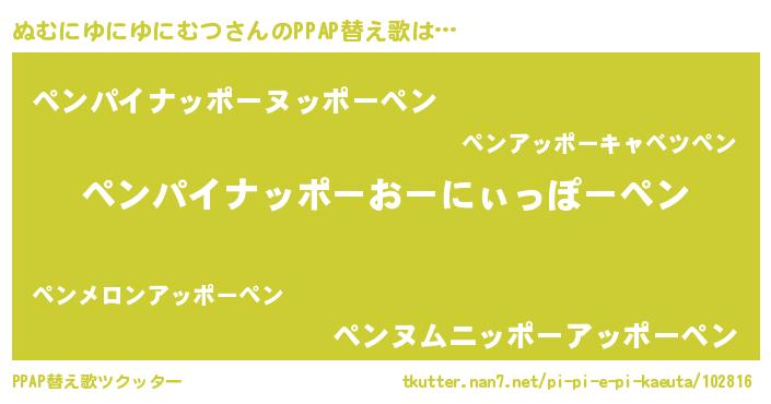 | ピコ太郎風あだ名 | 『ヌヌ太郎』『ピコヌ郎』『ヌム六郎』 |
