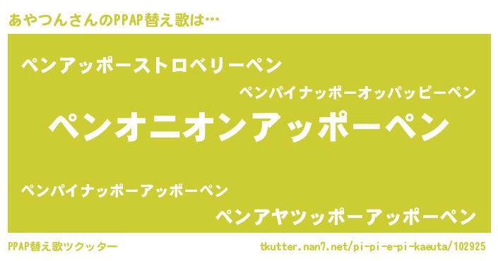 | ピコ太郎風あだ名 | 『アコ六郎』『ピア一郎』『アヤ史郎』 |