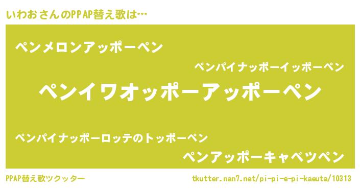 | ピコ太郎風あだ名 | 『イワ太郎』『イコ太郎』『ピイ四郎』 |