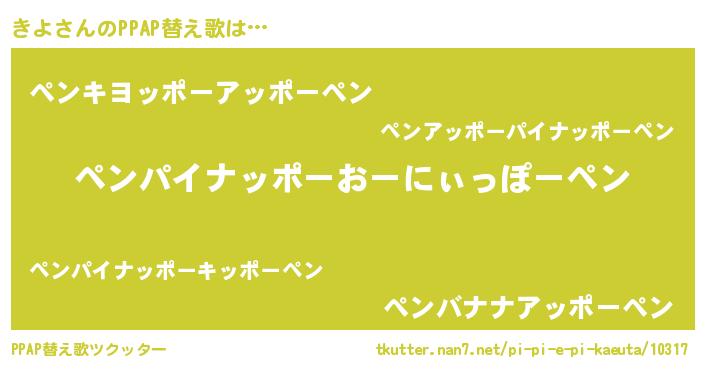 | ピコ太郎風あだ名 | 『キキ太郎』『キヨ三郎』『キコ六郎』 |