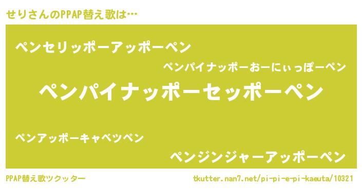 | 欧米人風あだ名 | 『ダルビッシュせり』『アンジェラ・せり』 |