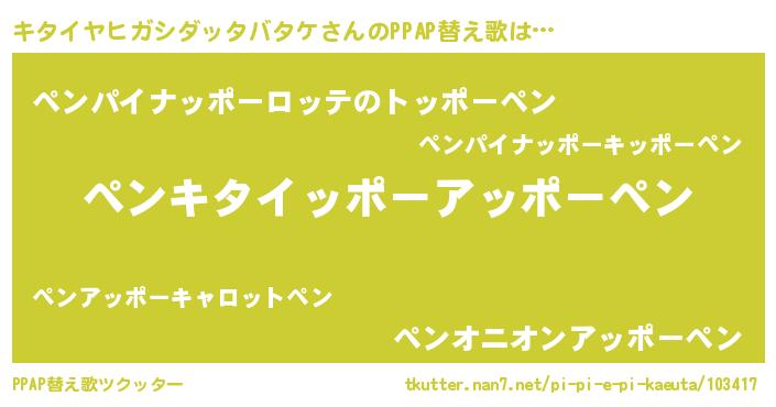 | ピコ太郎風あだ名 | 『キタ史郎』『キキ太郎』『キコ六郎』 |