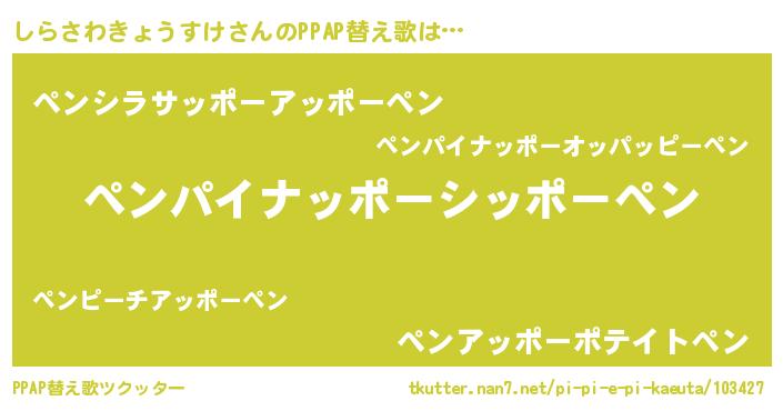 | ヘコむあだ名 | 『しらさわきょうすけ(苦笑)』『しらぷりん』 |