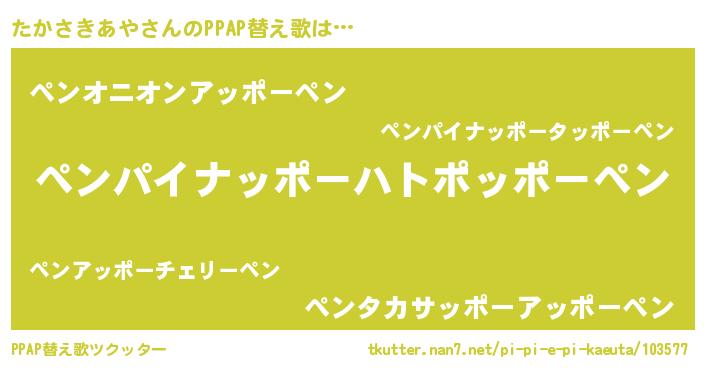 | 男性向けラノベタイトル風あだ名 | 『おまえをオタクにしてやるから、俺をたかさきあやにしてくれ! 』 |