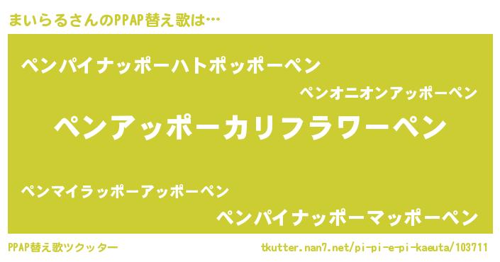 | 意味不明あだ名 | 『まいらるフォーエバー』『自称まいらる』 |