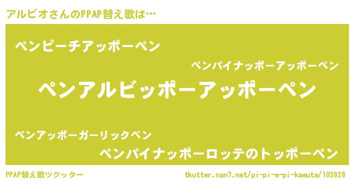 | 欧米人風あだ名 | 『ウサインアルビオ』『マイケルアルビオ』 |