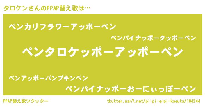 | ピコ太郎風あだ名 | 『タロ五郎』『タコ六郎』『タタ太郎』 |
