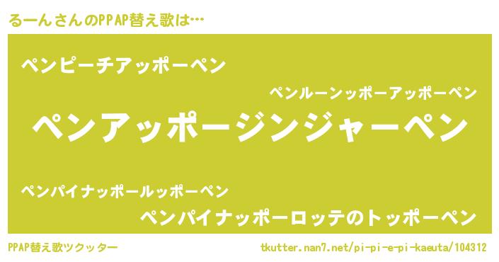 | ピコ太郎風あだ名 | 『ピル六郎』『ルコ次郎』『ルル太郎』 |