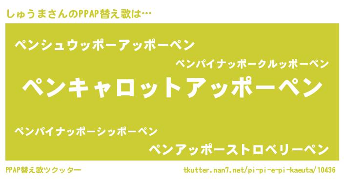 | 意味不明あだ名 | 『ペロリンしゅうま』『自称しゅうま』 |
