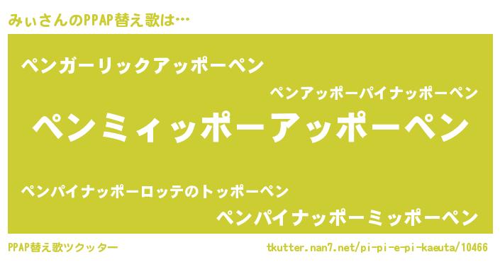| ピコ太郎風あだ名 | 『ミィ三郎』『ミコ十郎』『ピコミ郎』 |
