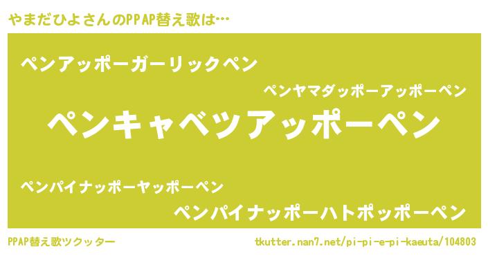 | ピコ太郎風あだ名 | 『ヤコ四郎』『ピヤ八郎』『ヤヤ太郎』 |