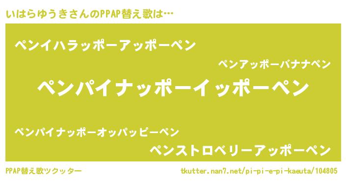 | ピコ太郎風あだ名 | 『ピコイ郎』『イハ六郎』『イコ一郎』 |