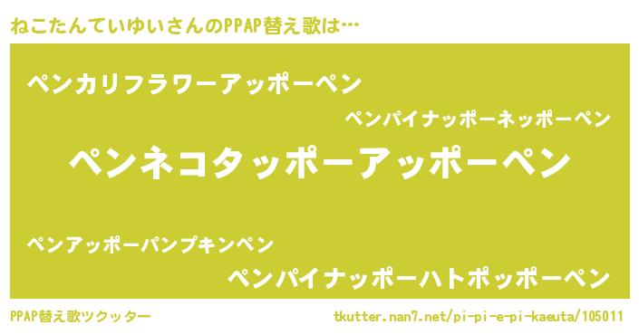 | ピコ太郎風あだ名 | 『ネコ史郎』『ネコ二郎』『ネネ太郎』 |
