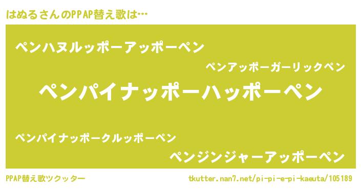 | ピコ太郎風あだ名 | 『ピコハ郎』『ハヌ十郎』『ハコ一郎』 |