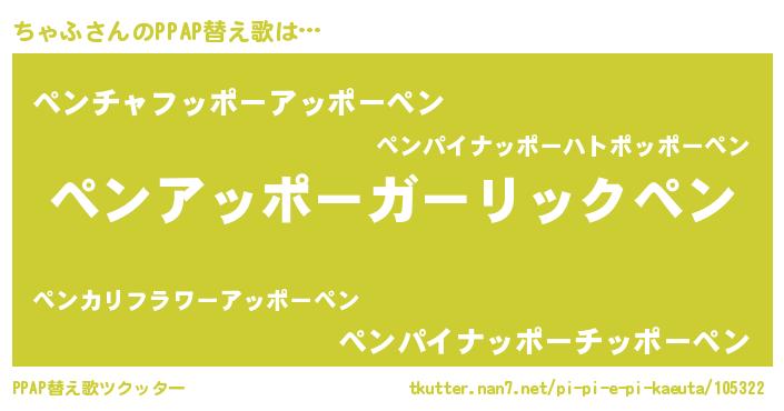 | 男性向けラノベタイトル風あだ名 | 『うちのちゃふが世界を掌握している!』 |