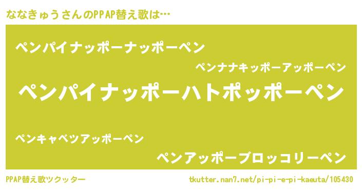 | 意味不明あだ名 | 『自称ななきゅう』『永久保存ななきゅう』 |