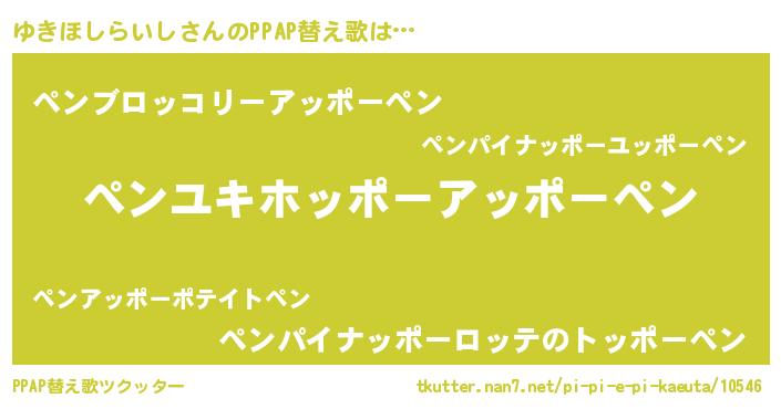 | ピコ太郎風あだ名 | 『ユキ六郎』『ユコ三郎』『ユユ太郎』 |