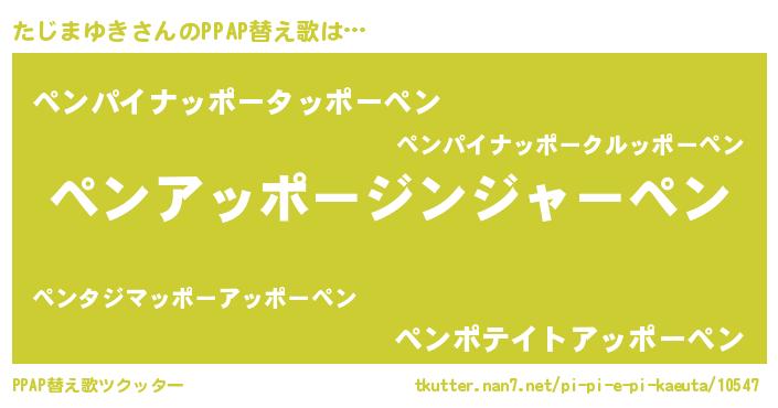 | 肩書あだ名 | 『たじまゆき国家主席』『たじまゆき機長』 |