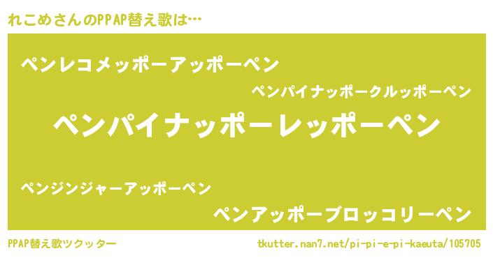| 意味不明あだ名 | 『永久保存れこめ』『自称れこめ』 |