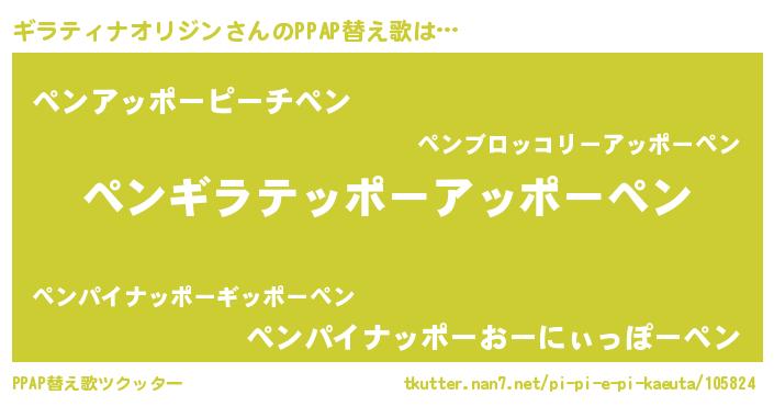 | ポケモン風あだ名 | 『ヒギラティナオリジン』『ギラテダネ』 |