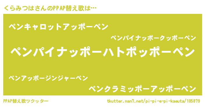 | 意味不明あだ名 | 『自称くらみつは』『ペロリンくらみつは』 |