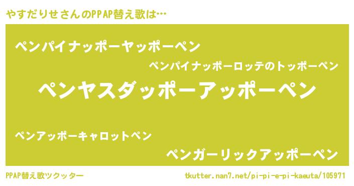 | ピコ太郎風あだ名 | 『ヤス史郎』『ピコヤ郎』『ヤコ次郎』 |