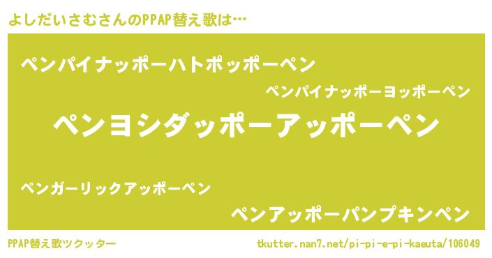 | ピコ太郎風あだ名 | 『ヨシ三郎』『ヨヨ太郎』『ピヨ三郎』 |