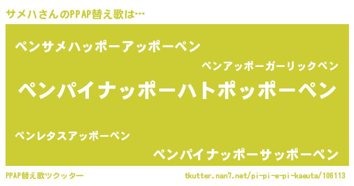 | ピコ太郎風あだ名 | 『ササ太郎』『サメ十郎』『ピコサ郎』 |
