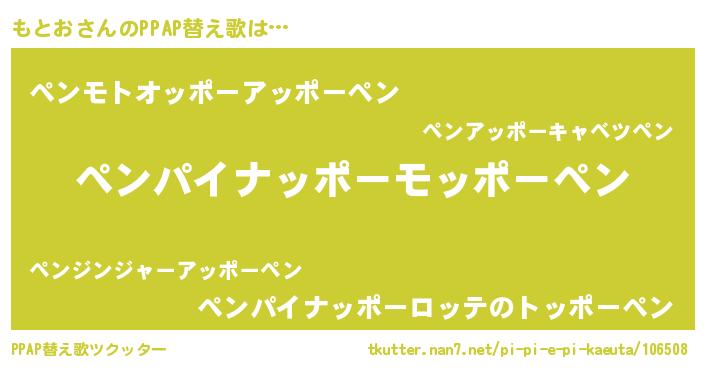 | ピコ太郎風あだ名 | 『ピコモ郎』『モト太郎』『モモ太郎』 |