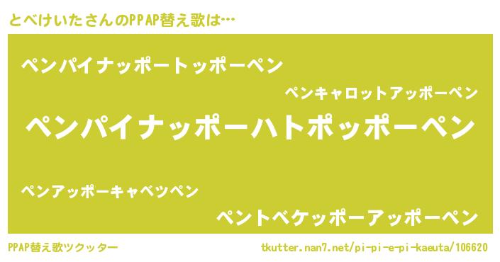 | ピコ太郎風あだ名 | 『トト太郎』『ピコト郎』『トベ二郎』 |