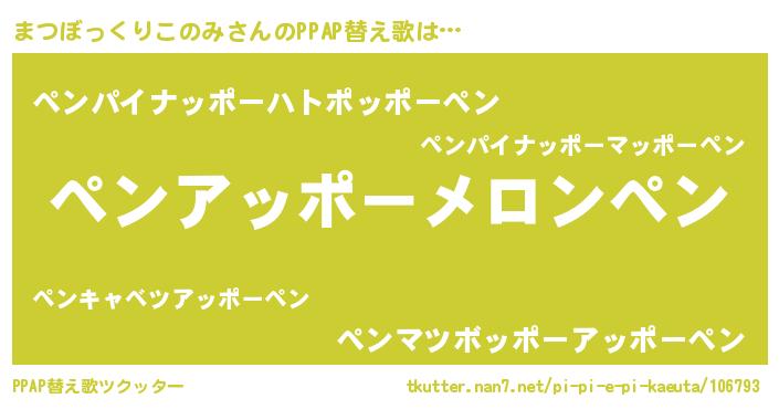 | 欧米人風あだ名 | 『まつぼっくりこのみクリステル』 |