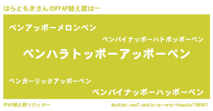 | 男性向けラノベタイトル風あだ名 | 『はらともきに滅ぼされるだけの簡単なお仕事です』 |