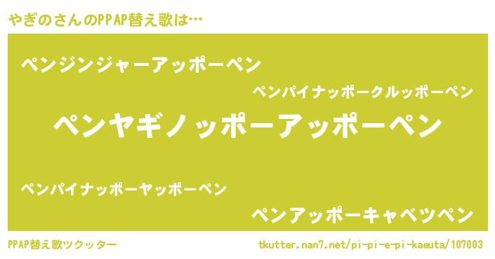 | ピコ太郎風あだ名 | 『ヤギ一郎』『ヤコ五郎』『ピヤ四郎』 |