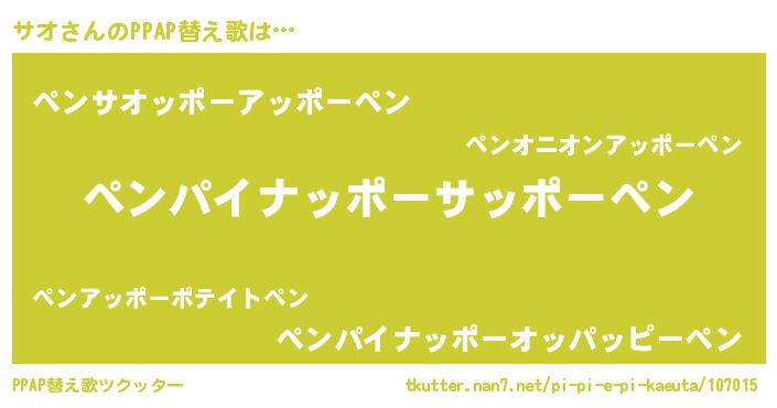 | ピコ太郎風あだ名 | 『ピコサ郎』『サオ一郎』『ササ太郎』 |