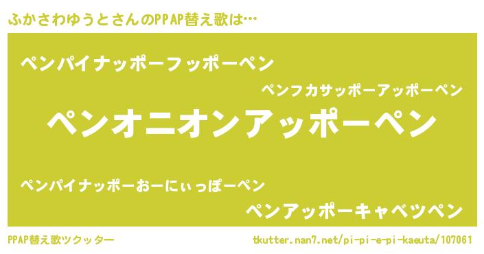 | 胡散臭い通販商品みたいなあだ名 | 『モテモテ間違いなし霊験あらたかなお札…その名も「ふかさわゆうと」』 |