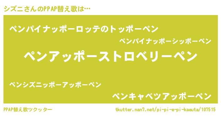| 2回繰り返すあだ名 | 『シシズズ』『はあはあ』『シズシズ』 |