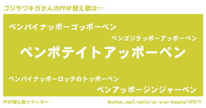 | 2回繰り返すあだ名 | 『ゴジゴジ』『てかてか』『こつこつ』 |