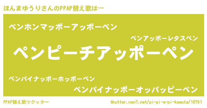 | 肩書あだ名 | 『ほんまゆうり少佐』『ほんまゆうり機長』 |