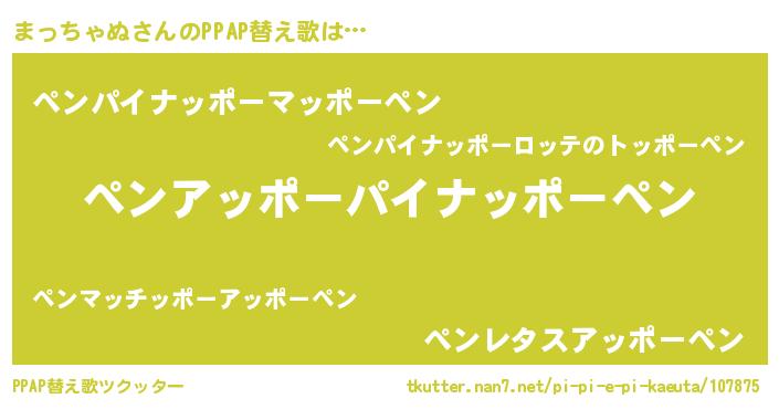 | 欧米人風あだ名 | 『まっちゃぬ・ステッグマイヤー』 |