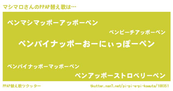 | ピコ太郎風あだ名 | 『ママ太郎』『マシ史郎』『ピマ史郎』 |