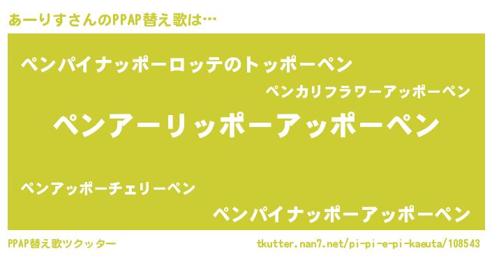 | 料理風あだ名 | 『ポテトとあーりすのキッシュ☆』 |