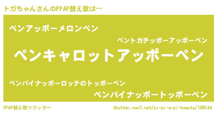 | 意味不明あだ名 | 『ペロリントガちゃん』『自称トガちゃん』 |