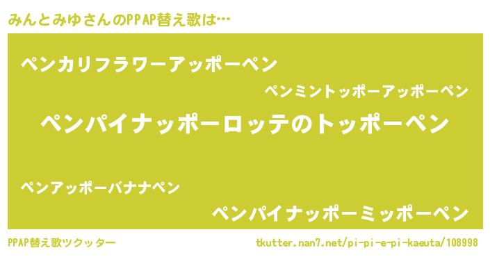 | ヘコむあだ名 | 『みんにゅー』『みんとみゆ(笑)』 |