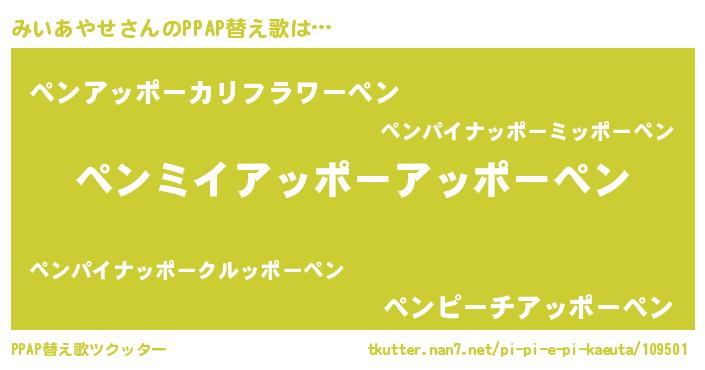 | 欧米人風あだ名 | 『ウサインみいあやせ』 |