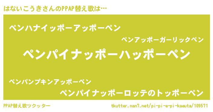 | ピコ太郎風あだ名 | 『ピコハ郎』『ハナ一郎』『ハハ太郎』 |