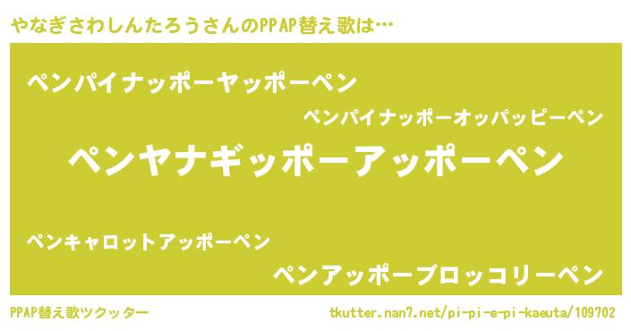 | ピコ太郎風あだ名 | 『ヤナ三郎』『ピコヤ郎』『ピヤ六郎』 |