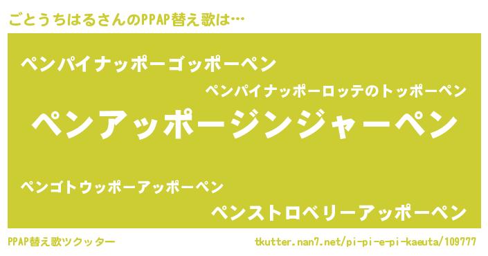 | 肩書あだ名 | 『ごとうちはる少将』『ごとうちはる総統』 |