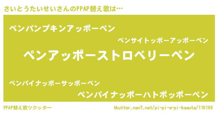 | 意味不明あだ名 | 『住所不定無職さいとうたいせい(13歳)』 |
