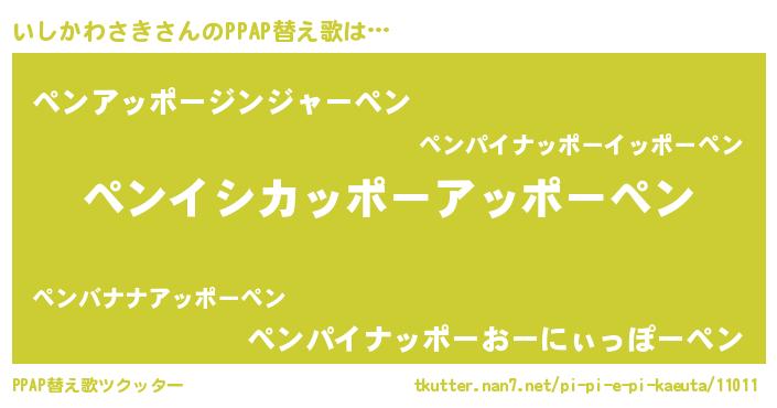 | ピコ太郎風あだ名 | 『イシ一郎』『ピイ一郎』『イイ太郎』 |