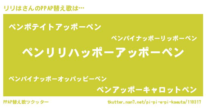 | ピコ太郎風あだ名 | 『リリ六郎』『リコ四郎』『ピリ八郎』 |